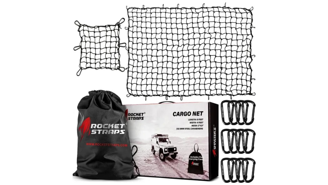 The Rocket Straps Cargo Net for Pickup Truck Beds is durable enough to handle large loads and has a break strength of 1,430 pounds. It’s made with a high-quality 5mm 3” x 3” mesh and has carbon steel carabiners. This cargo net is UV- and weather-resistant and comes with a lifetime warranty.