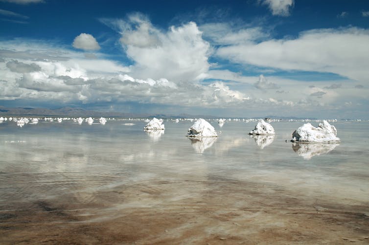 Piles of salts containing lithium in the Uyuni flat in Bolivia.