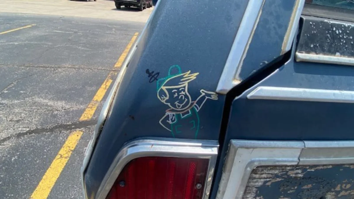 Each person was encouraged to do something that improved the wagon during their ownership. The Elledges replaced the original horn with one that sounded like the Dukes of Hazzard General Lee. Yeley added some Mexican horse blankets to the seats and had classic pinstripes painted on the front, back and sides of the wagon, the final touch being an image of cartoon character Elroy Jetson above the left taillight.