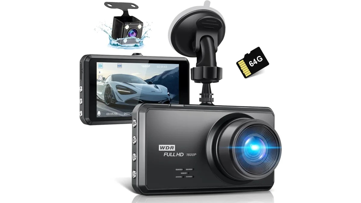 This front and rear dash cam records in Ultra HD 176° front video and 160° 1080p rear video. The rear cam is also waterproof, to protect it from the elements. Inside, the camera features a 3.2-inch HD screen with an easy-to-use navigation system. Like the others, this cam features loop recording, a G-sensor, night vision and parking monitoring. It’s easy to install and it even comes with a free 64GB SD card.