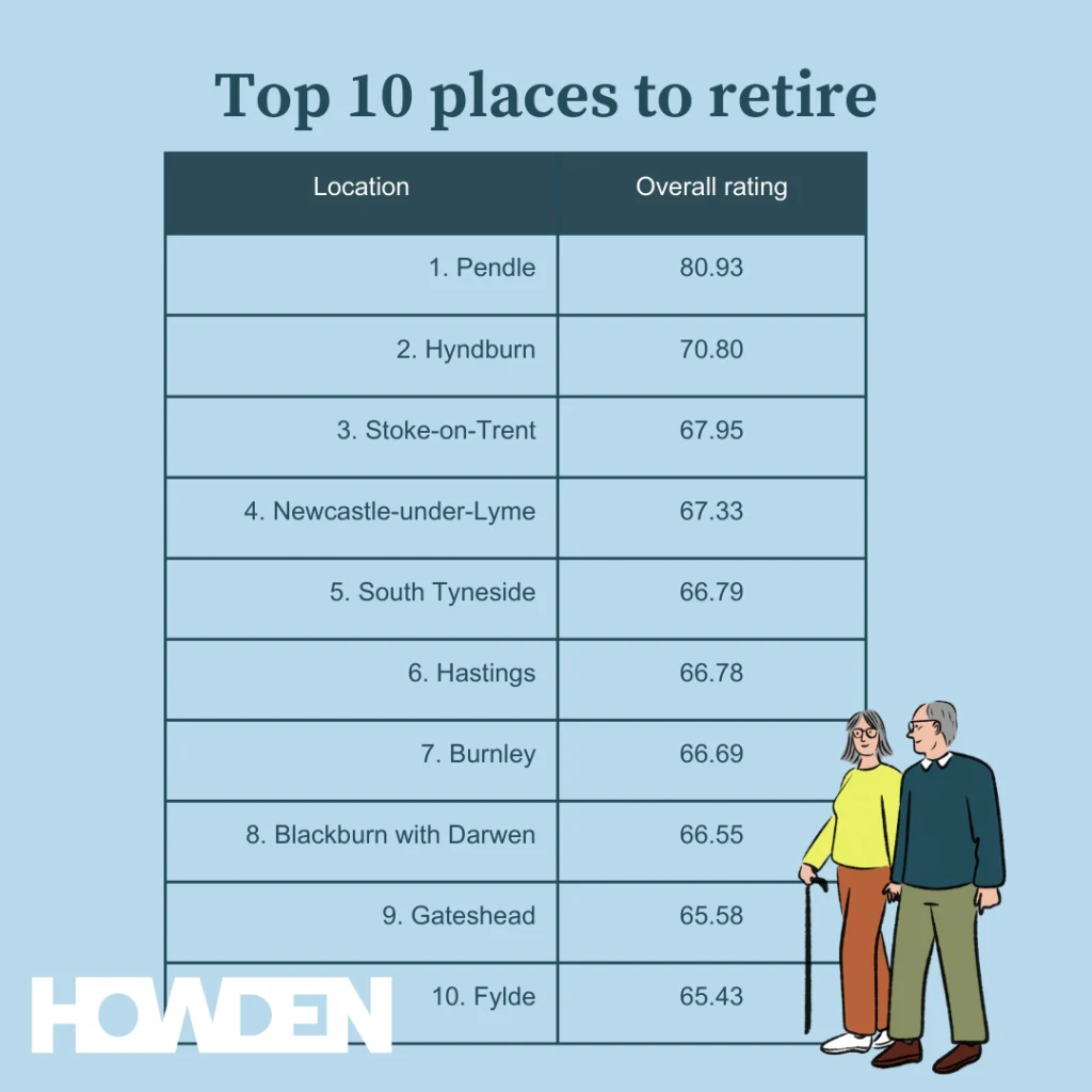 In first place, claiming the title of the best place to retire to, is Pendle, in Lancashire. Here, wellbeing was ranked 8.10, which is the highest wellbeing ranking out of the top ten. Known for its picturesque landscapes and historical significance, Pendle has friendly communities and nearby hospitals and doctors’ practices. It’s undoubtedly a fantastic place to spend retirement, whether strolling through historic villages or enjoying the tranquil countryside.
