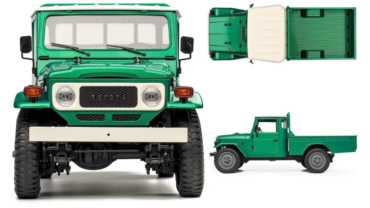 I saved the best for last with this one. The FJ45 isn’t as well known as its FJ40 brother but in this author’s opinion it is the best of the 40 series. Featuring a bed in place of rear seats this Cruiser was probably more at home on the farm than on the road or trail. This remote-controlled version is 1:12 scale, incredibly detailed, comes in either green (my favorite) or red, and features a two-speed gearbox. According to the listing, “the hood, side doors, and tailgate cargo compartment are all openable, and the front windshield can be folded forward, which can be transformed into a convertible shape if the roof is removed at the same time.”