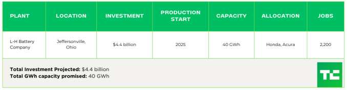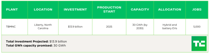 The investment into producing batteries in the U.S. and Canada changes regularly, so we’ve started tracking these promises.
