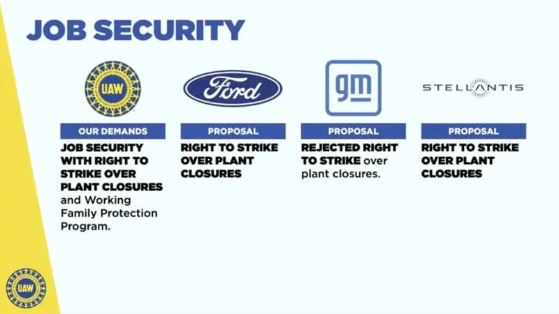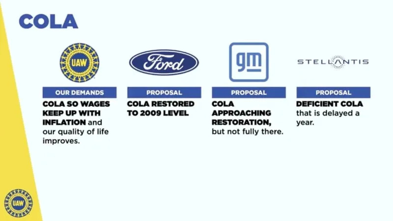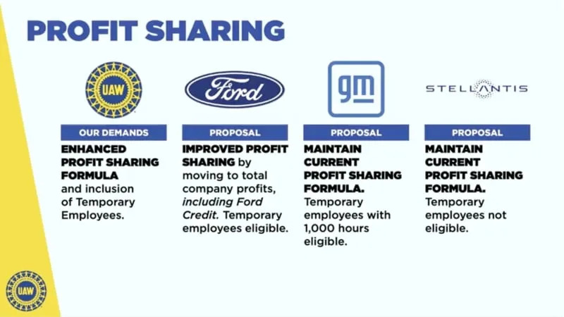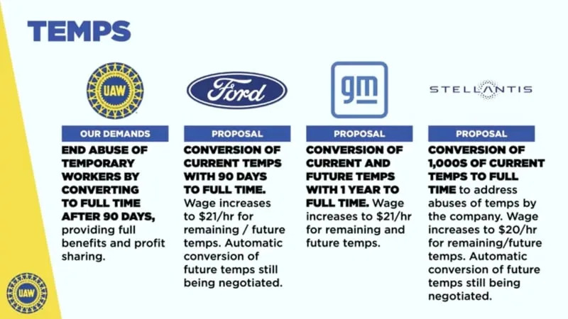 Providing unusual detail into the negotiations, Fain presented a series of slides showing the current status with each automaker: