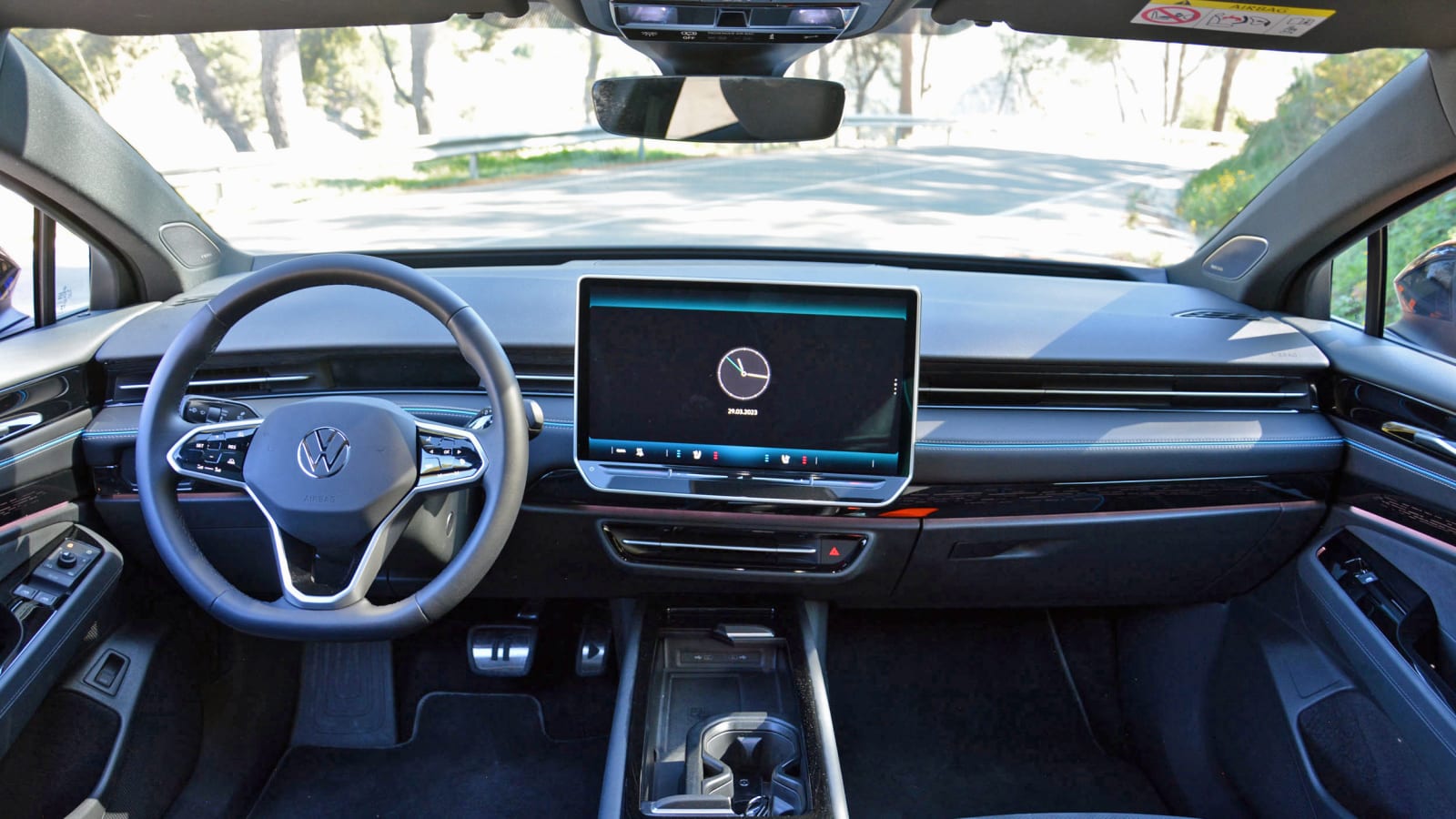 I can’t tell you much about the ID.7’s exterior design because I’m sworn to secrecy until the sedan’s official unveiling on April 17. What I can say is that, like the concept, the production model was designed to be as aerodynamic as possible. Volkswagen pegs the sedan’s drag coefficient at 0.23, which lands in the same bracket as electric sedans like the BMW i4 (0.24) and the Porsche Taycan (0.22). It stretches 195.3 inches long, 73.3 inches wide, and 60.6 inches tall, which is bigger than the American-market Passat Volkswagen axed in 2022 that was a huge car itself, measuring 191.9 inches long, 72.2 inches wide, and 58.5 inches tall. The ID.7 rides on a 116.8-inch wheelbase, while the Passat’s wheelbase checked in at 110.4 inches.