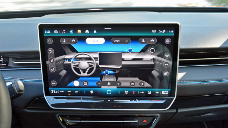 Speaking of the touchscreen, the ID.7 receives a 15-inch unit (up from 12 inches in the ID.4) that displays a new version of Volkswagen’s infotainment system. Some of the changes made to the software reflect a reality that’s becoming increasingly clear across the entire automotive spectrum: Using what’s pretty much a giant smartphone to control your car is relatively dangerous. Volkswagen doesn’t want you hitting a deer or worse while you’re trying to turn down the heater, so it added tile-like modules to the home screen so that commonly-used features such as the climate control system’s settings are displayed front and center at all times. These co-exist with other menus, like the navigation system and entertainment options. You can adjust, say, the heater fan speed without leaving the navigation screen. Saving two or three taps of a touchscreen might sound totally trivial, but it makes a massive difference while driving.