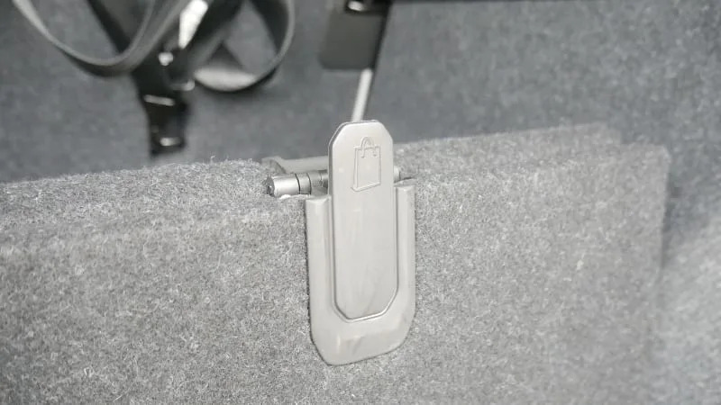 The cargo floor features a handle that lets you fold it up vertically to serve as a cargo divider in addition to granting access to the underfloor area.