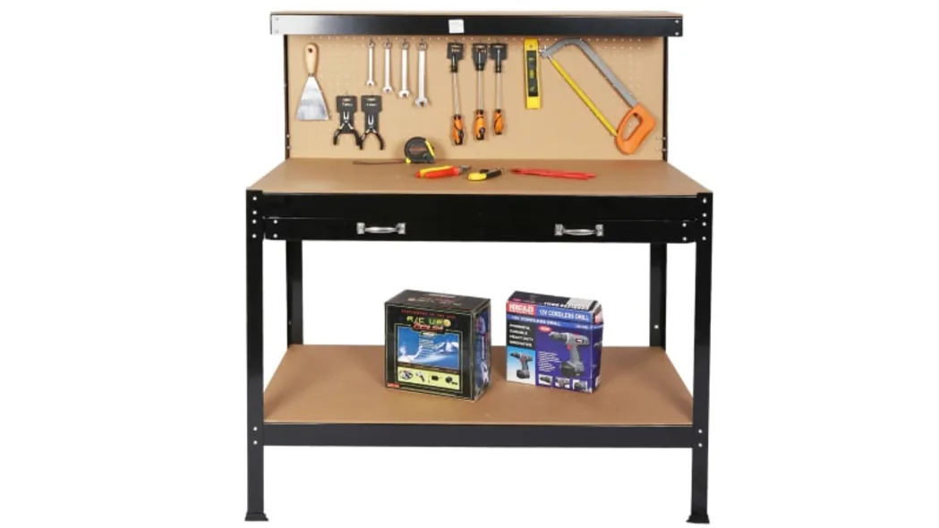 If you don’t have a workbench in your garage already and it is large enough to fit one, I highly recommend it. At 55″ x 45.3″ x 21.7″ this MDF wood workbench from Red Barrel Studio is small enough to not take up a bunch of space, yet has a drawer and a pegboard to keep your stuff organized.