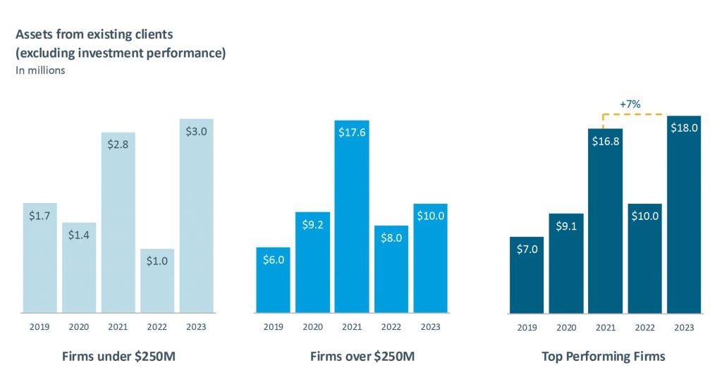 Existing-client asset growth, excluding investment performance, was 4.5 times higher for top-performing RIAs than for all other firms in 2023.