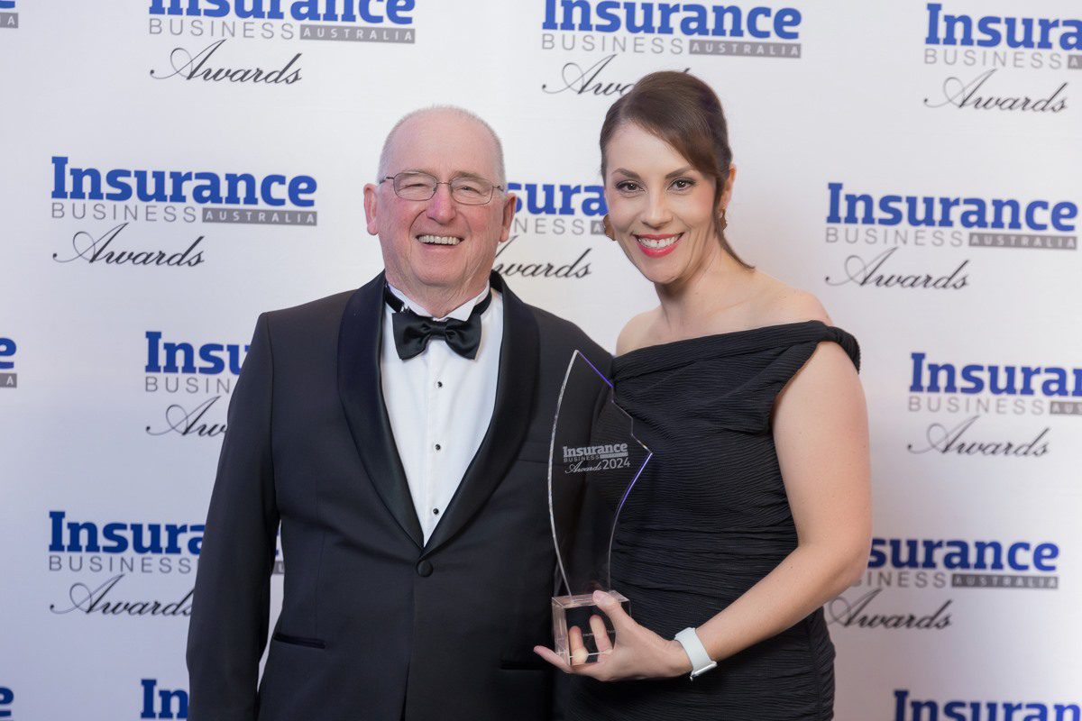 Sare Ozkara (pictured immediately below with Keith Roderick, Life Achievement winner for 2024), accepted last year’s Insurer of the Year prize for her firm, Vero Insurance.