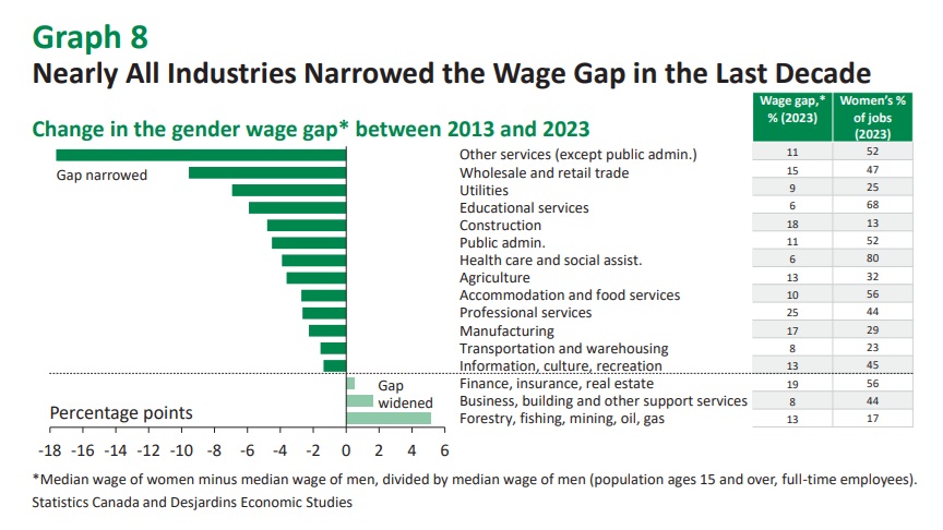 The findings were shown in a recent Desjardins report highlighting persistent gender disparities in the Canadian workforce.