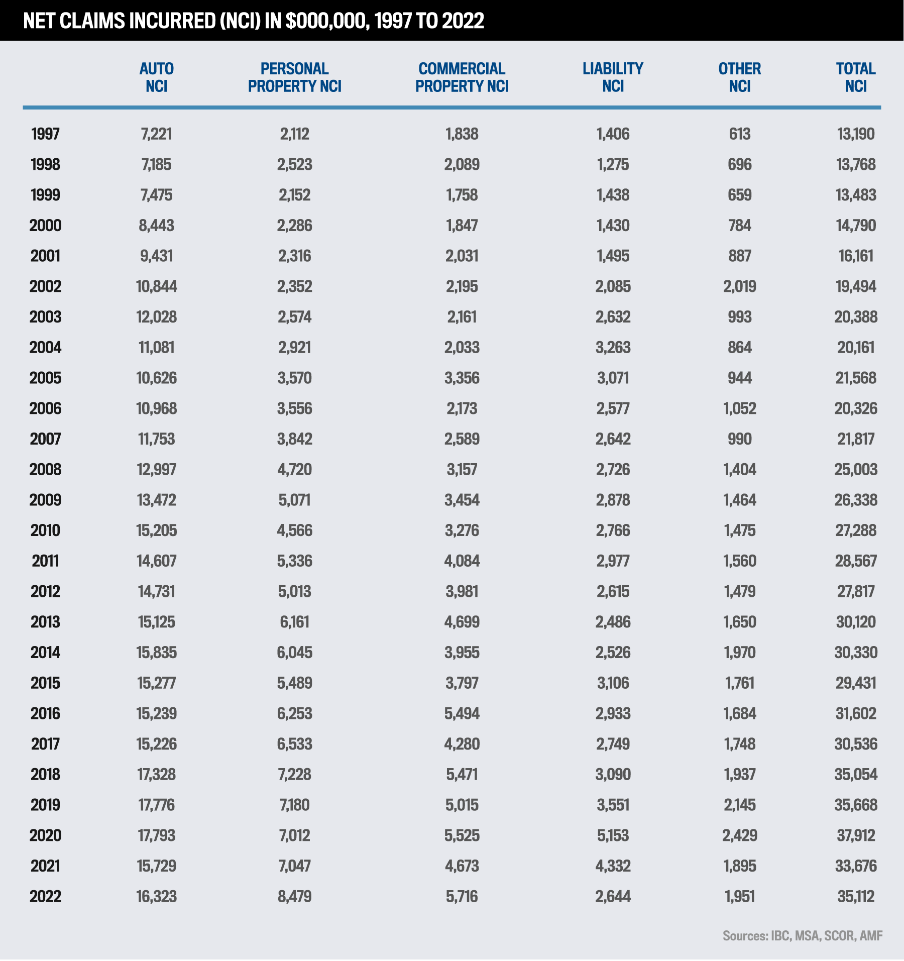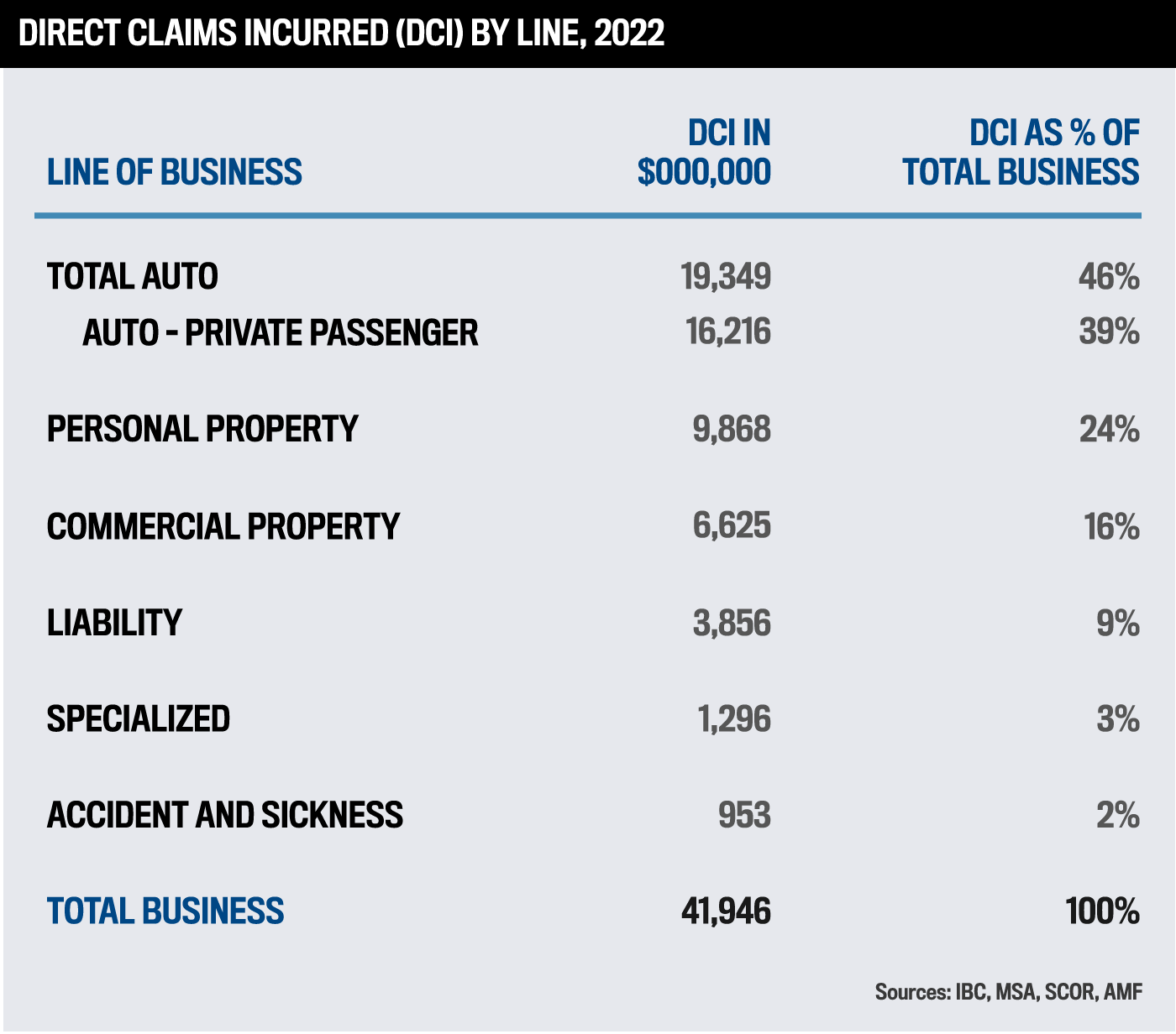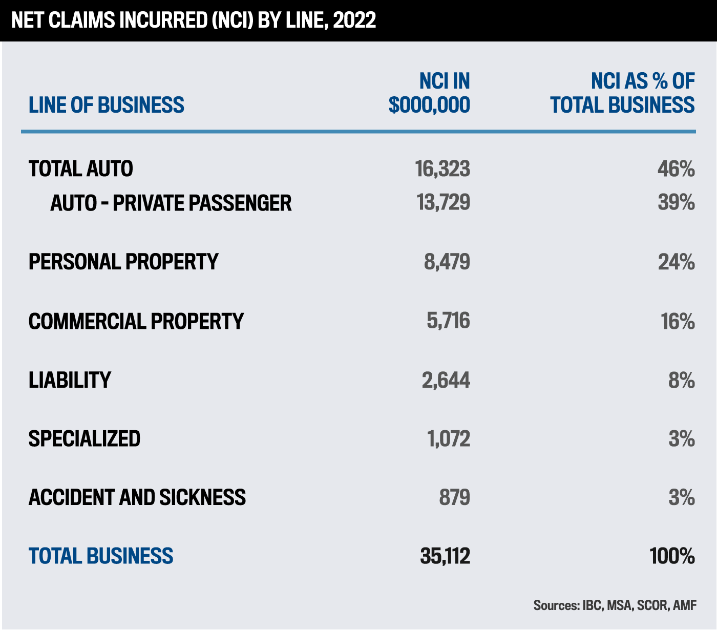 IBC’s data also showed the breakdown of claims (direct and net) across lines of business.