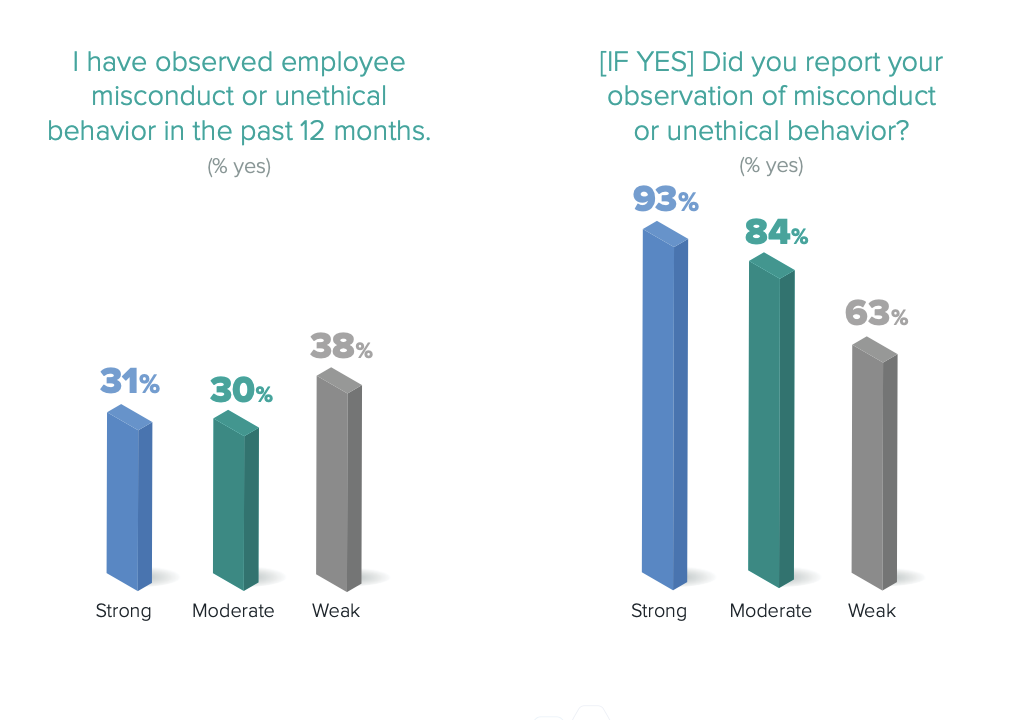 It found that 33% of employees observed misconduct or unethical behaviour in the past year, with instances going up to 38% for organisations with weak workplace cultures.